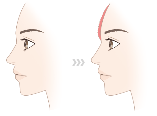 前額部は年齢を重ねるにつれて、骨格も皮下組織も委縮してくることで、ごつごつとした印象になってしまいますので、不足した組織の分をヒアルロン酸注入によって補う事で、アンチエイジングの効果もあります。